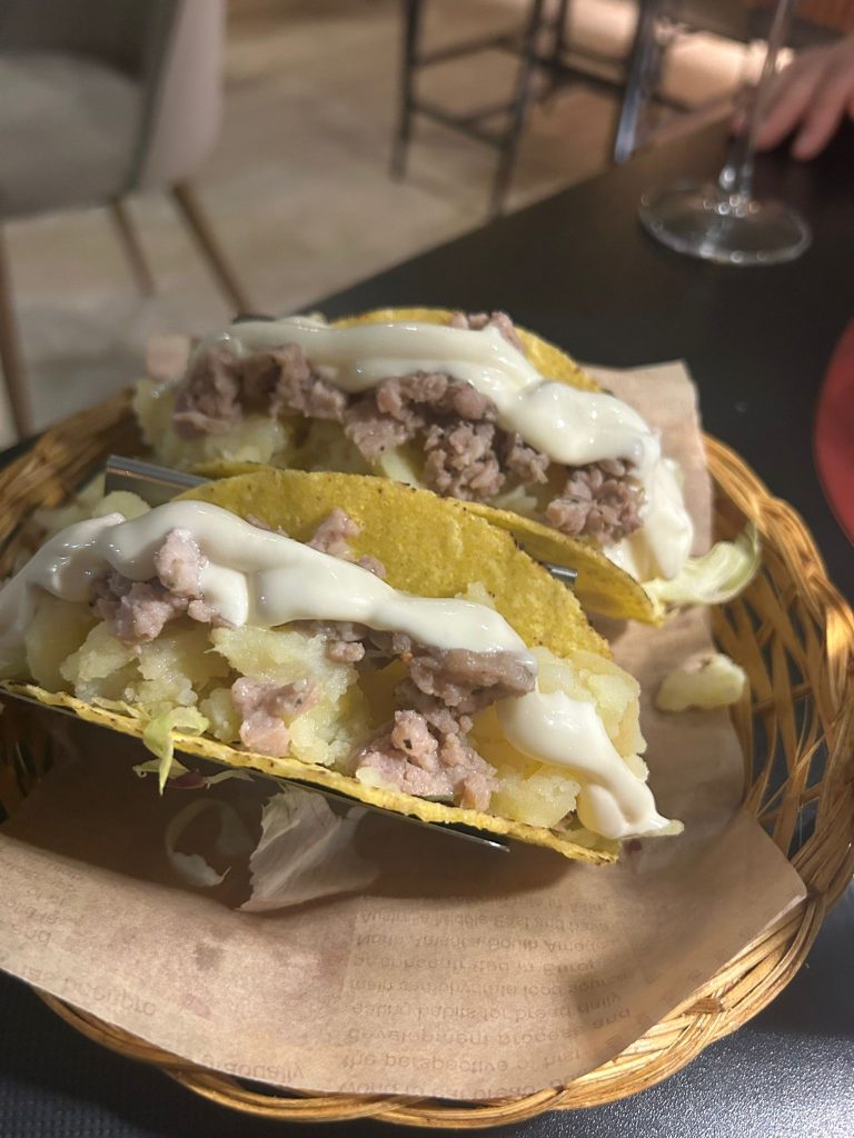 Involtini primavera con parmigiana di melanzane; bao con salsiccia e friarielli; tacos con patate schiacciate, insalata, salsiccia e maionese al peperoncino; ravioli coreani saltati in soia con genovese alla napoletana e riduzione di aceto balsamico, queste sono alcune prelibatezze degustate con vini campani in abbinamento che ci hanno fatto fare il giro del mondo a Nola.