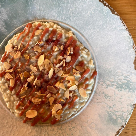 La location e’ curatissima, HUMUS il ristorante della struttura molto romantico e di stile, spazi aperti allestiti in pieno verde circondati da vigne e ulivi, una vera chicca. Ci siamo fatti coccolare da un percorso di degustazione eccellente, ogni pietanza opportunamente accompagnata dalla selezione dei vini di casa. Il benvenuto con Carpaccio di bufala e maionese senapata accompagnato da VIENT E MARE, a seguire uovo in purgatorio su pappa al pomodoro con polvere di carota nera, una vera esplosione di gusto con il fiano di casa NUSIGEPA (acronimo tra i nomi dei piccoli di casa) continuando con ZAGREO in abbinamento con lo speciale Risotto acquerello al Blu di bufala con gel di ciliegie e mandorle, per finire con il Pelatello affumicato con nocciole e giardiniera coccolato dalle note di PHOS AGLIANICO 2021, specialissimo.