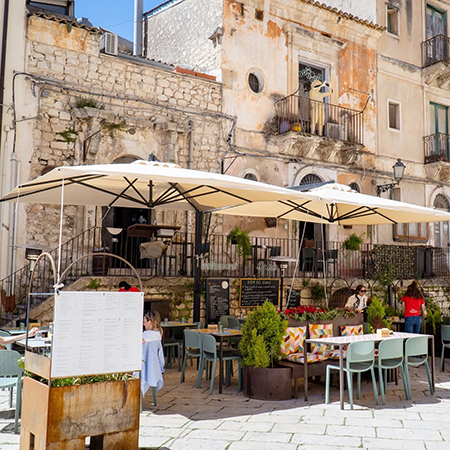 Vi portiamo in Sicilia, da Buki Buki, nella splendida piazza principale di Scicli, proprio di fronte al commissariato più amato d’’Italia: stiamo parlando del Commissario Montalbano ovviamente e già solo questo rende il pranzo un’esperienza unica!